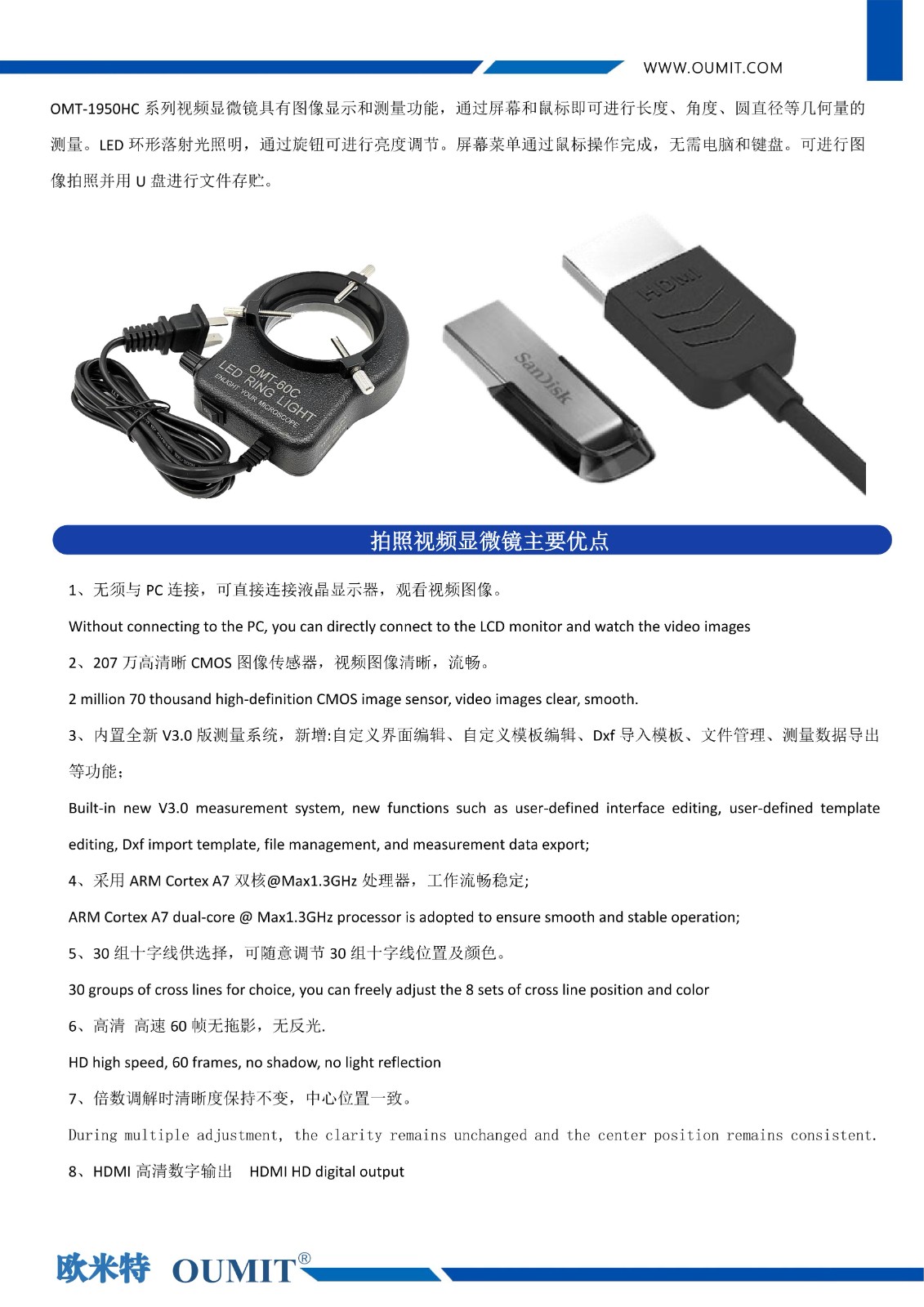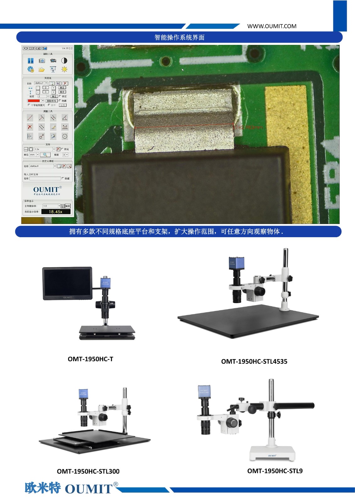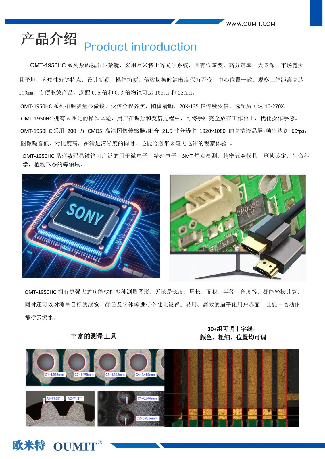 OMT-1950HC系列HDMI高清高速画线拍照量测视频数码显微镜