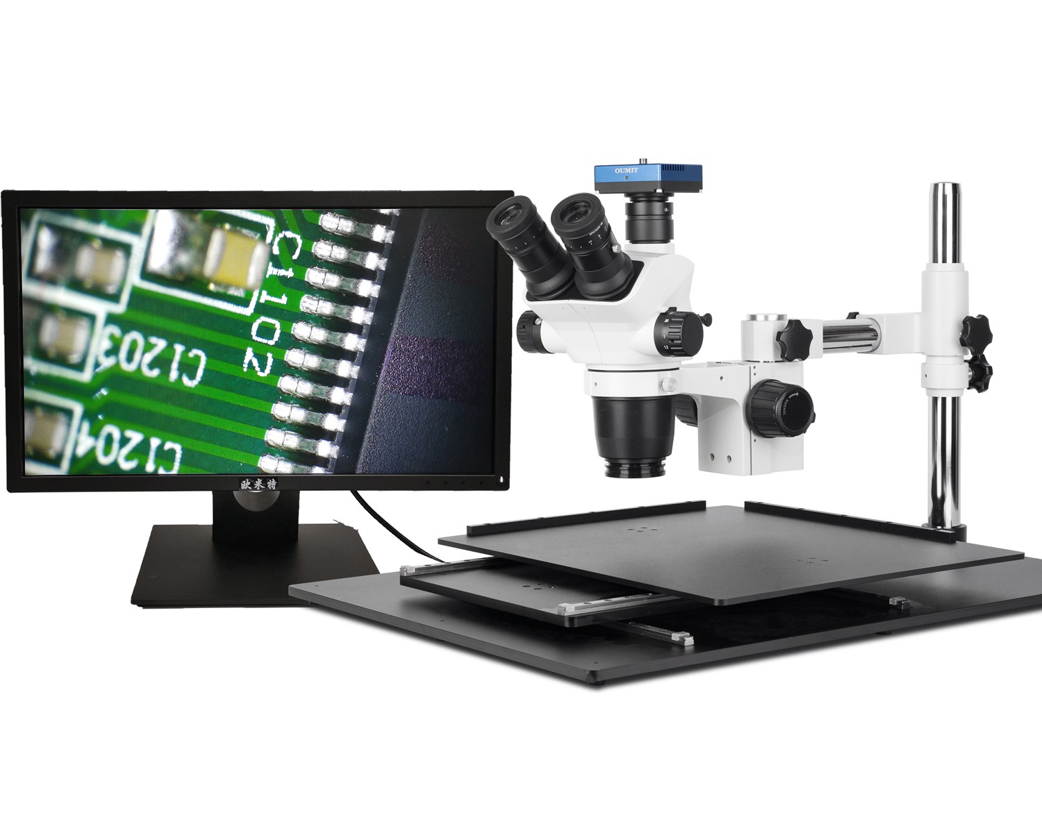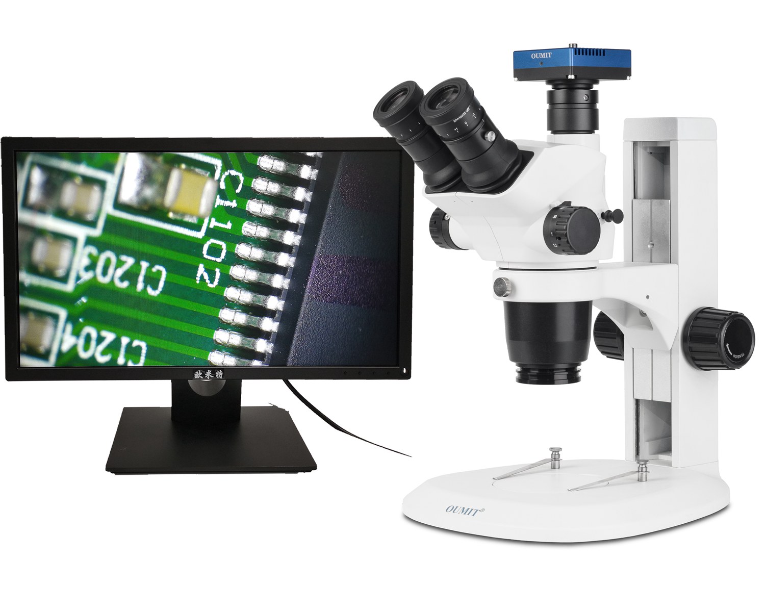 OMT-2860HC-4K:三目显微镜SC61 +彩色相机OMT-960HC(内置测量系统)+ 液晶显示器+可调LED光源