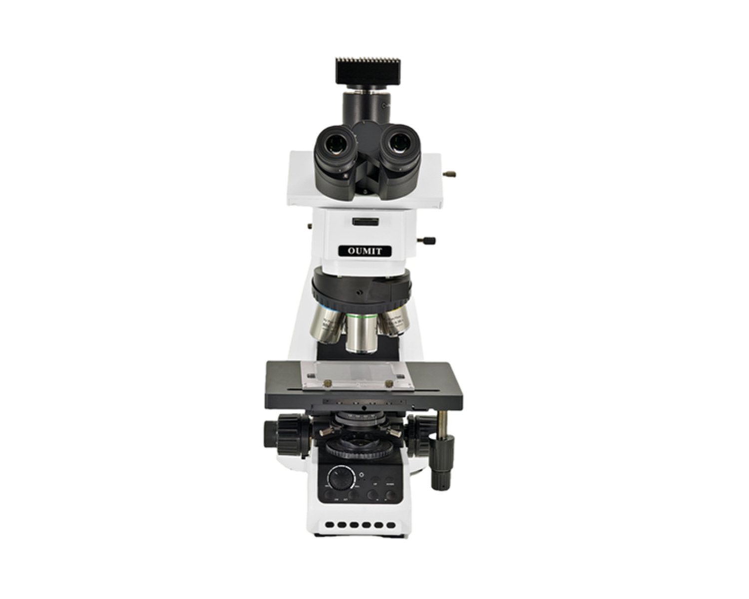 透反两用机架,低手位粗微同轴调焦机构,粗调行程27mm,微调精度0.001mm。带有防止下滑的调节松紧装置和随机上限位装置。带平台位置上下调节机构,更大样品高度40mm